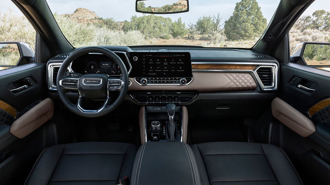 It’d be negligent not to mention the Canyon’s interior, which includes large, high-definition screens for the instrumentation in front of the driver and the center console infotainment system, along with trim made from either carbon fiber or open-pore wood, and leather seats. It’s reminiscent of the most luxurious versions of full-size trucks and is considerably nicer than any other midsize truck available anywhere.