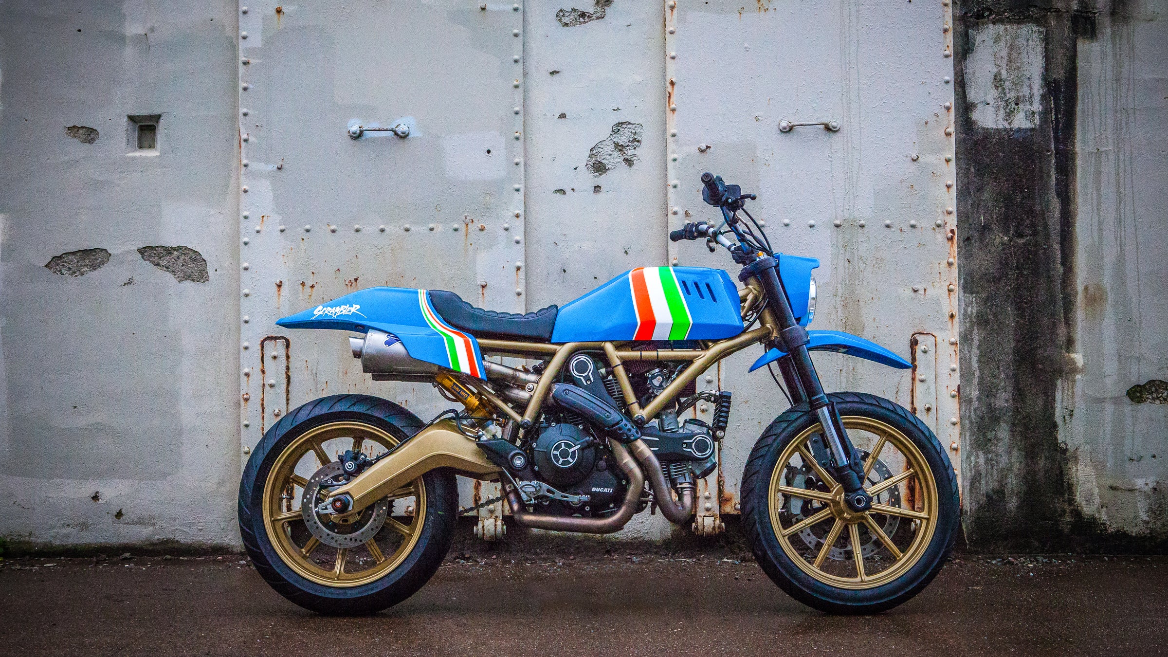 Ducati designed this motorcycle in collaboration with the renowned tattoo artist Grime. The base is an 803cc Scrambler Icon bike painted with a design Grime borrowed from the 1980’s dirt bike aesthetic. All the parts were custom built for this build. The finished project will be auctioned off this summer, with all proceeds going to Shiners Hospital for Children.