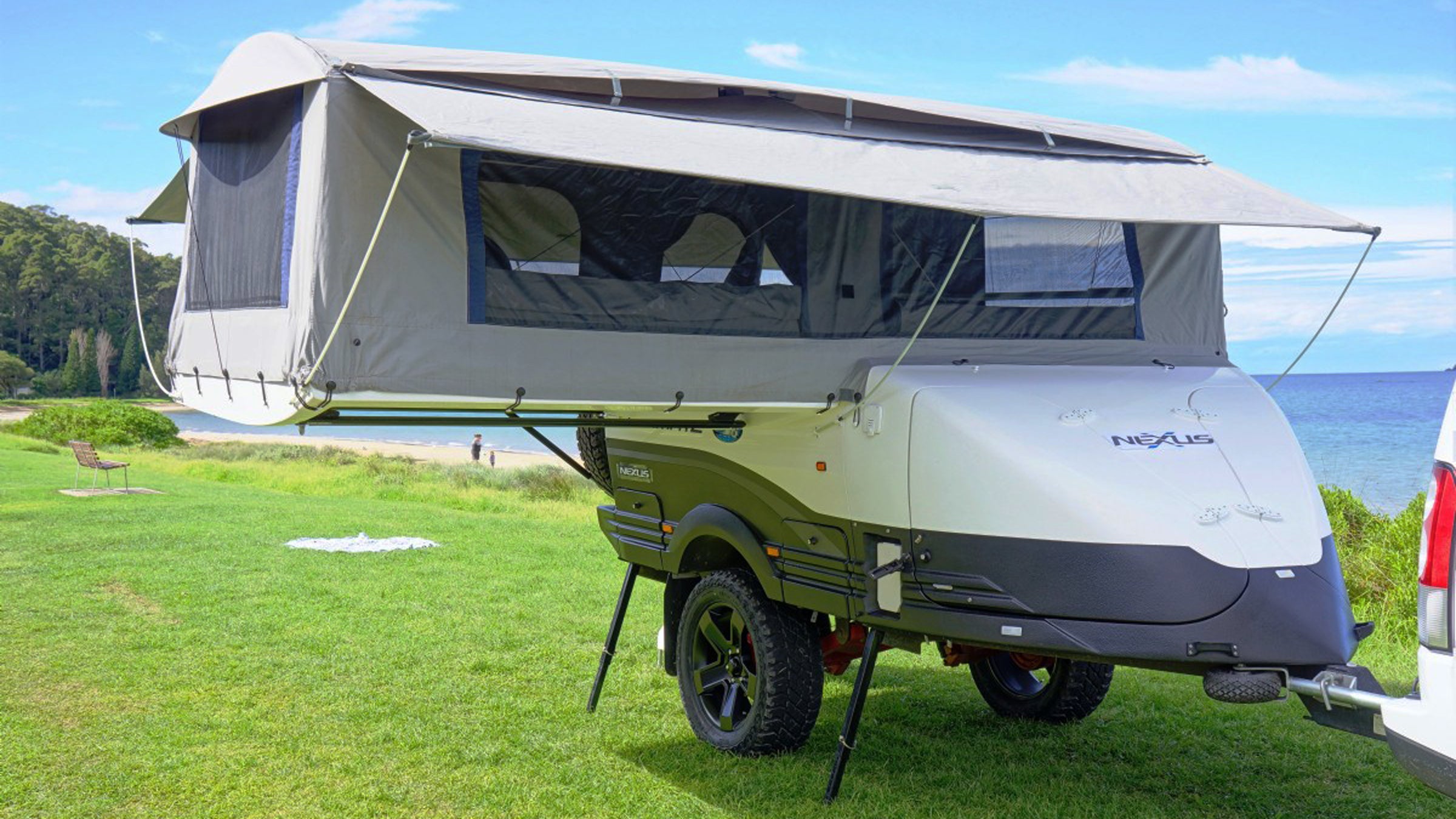 This burly pop-up camper ($55,600) is the perfect marriage of off-road capability and campsite pampering. The Nexus rolls on massive 20-inch tires, giving it an impressive 22 inches of clearance.