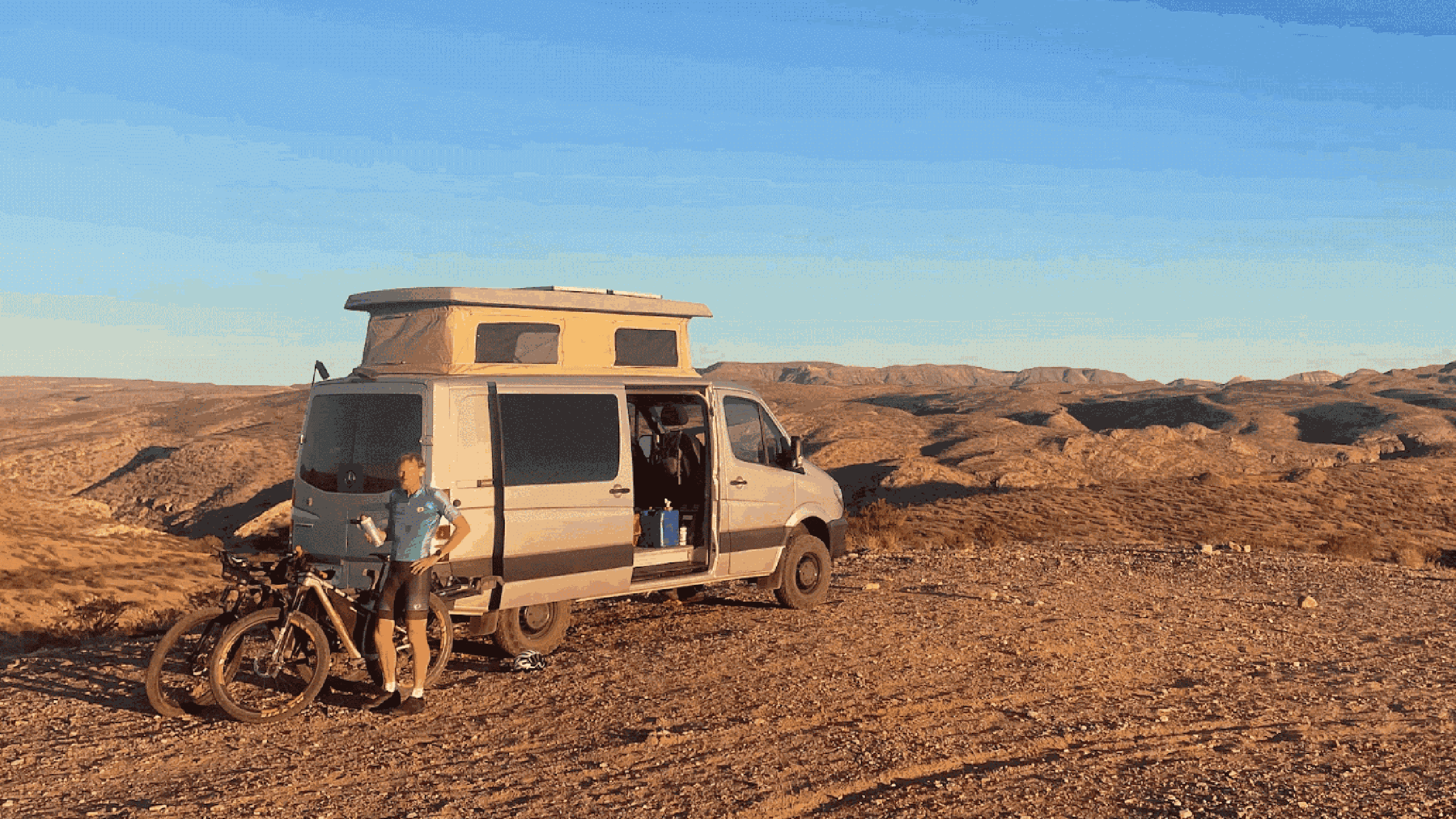 My good friends Aaron Gulley and Jen Judge, both longtime Outside contributors, are hunters, cyclists, climbers and skiers, and have lots of experience camping and living full-time out of adventure rigs. Since 2016, their go-to setup has been a 2016 Chevrolet Silverado 2500HD towing a 2014 Airstream Flying Cloud 23FB. Last Fall, they bought a 2016, 4×4 low-roof 144” Mercedes Sprinter. Theirs has a Sportsmobile pop-top and a minimalist buildout that lends itself to better off-road performance than you’ll get out of most vans.