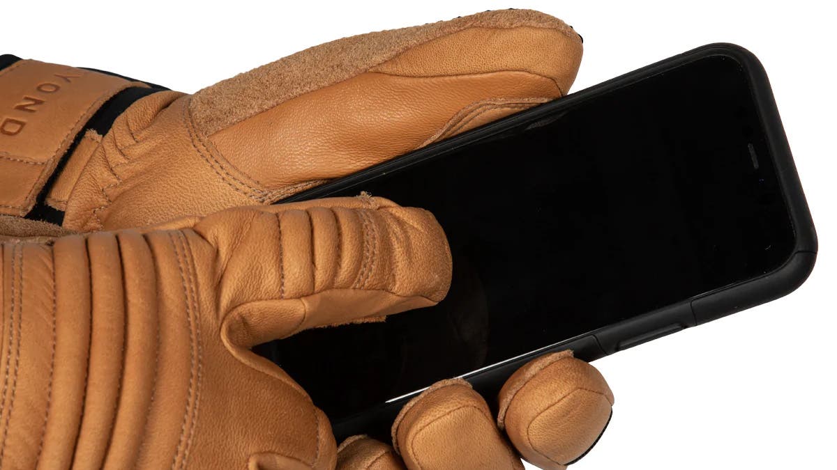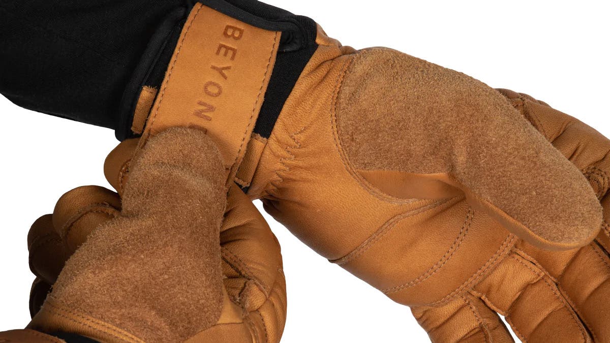 For its Guide Gloves shell, gear company Beyond employs a thick, supple cow belly leather for most of the construction, and conductive goat leather for the tips of the thumbs and index fingers, so you can work the capacitive touchscreens on smartphones. The back of the thumb is also covered in suede, so you can wipe snot off your face.