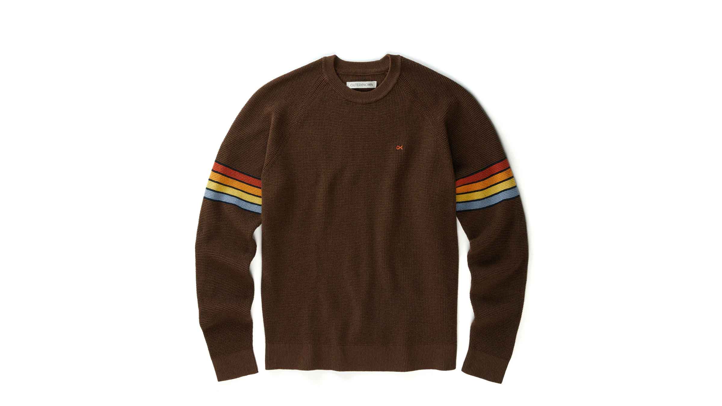 Outerknown leans hard into the nostalgia of ‘70s board sports with the aptly named Nostalgic Sweater (notice the tri-color racing stripe that is reminiscent of board shorts and the best Matchbox cars from my childhood). But the styling is the only bygone aspect of the Nostalgic; for this sweater, Outerknown used a mix of organic cotton and Coolmax, which is a polyester known for its high moisture-wicking capabilities, to create a waffle-knit piece that’s built for sipping tea under a blanket or riding bikes on sunny winter days. It has a sweatshirt vibe to it, making it the most casual sweater on this list.
