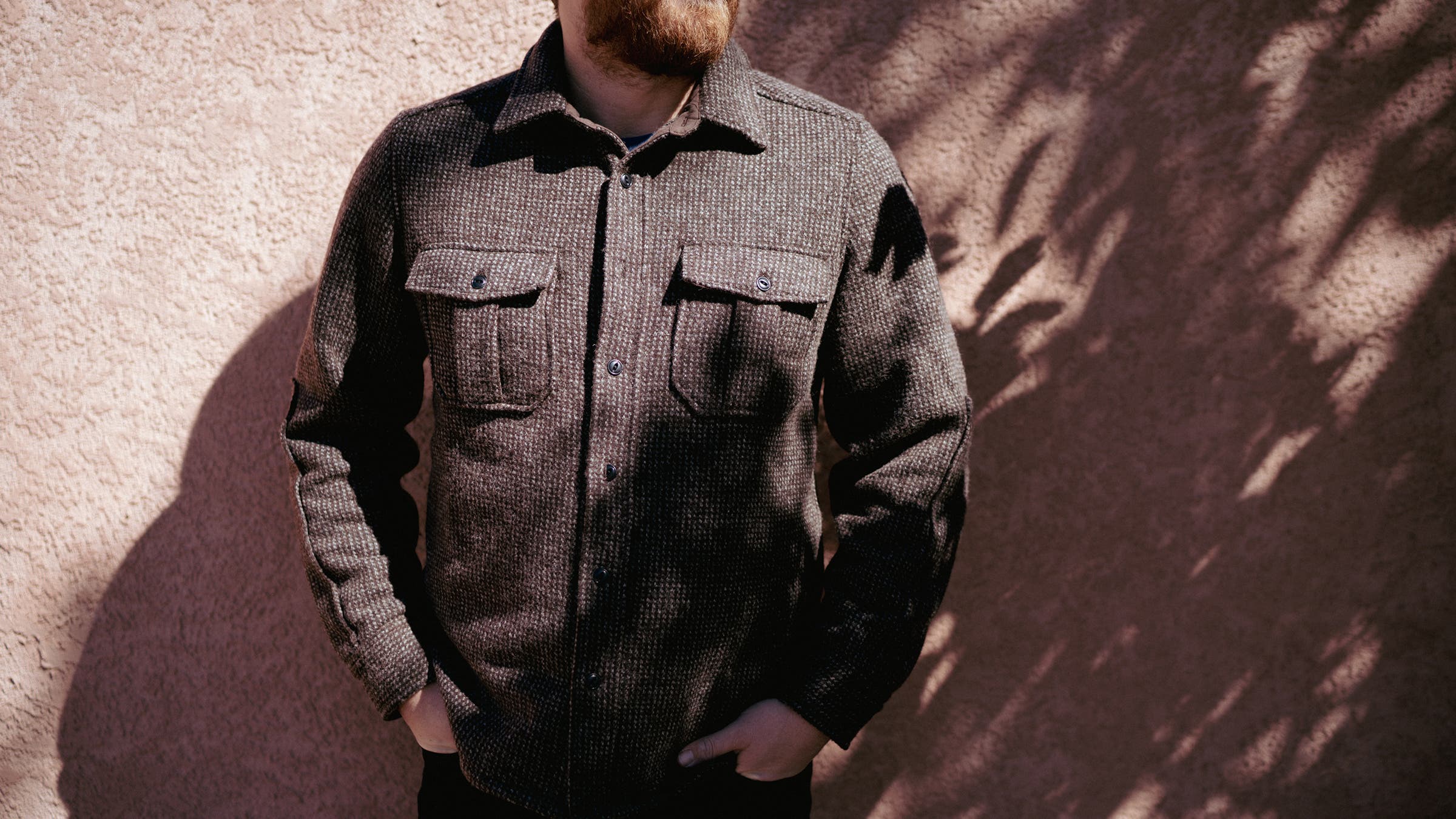 Thanks to a textured outer and details like reinforced elbows, this overshirt has a timeless vibe and could easily be a piece from your grandpa’s closet. I’ve been wearing it into the office, but its thick and tough wool/polyester blend is durable enough for yard work. When temps get really cold, I’ll layer a chunky vest on top. Here are some other overcoats I’m excited about.