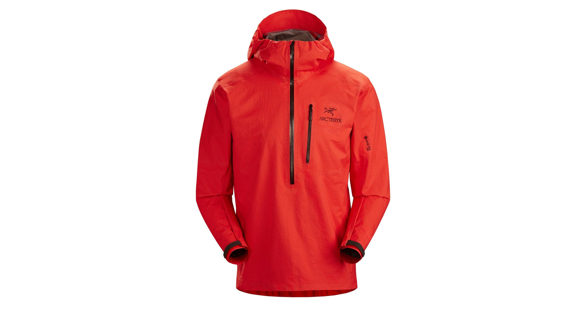 Hot climates, fast and light missions, and mountains that rarely see precipitation call for wispy rain gear. This tissue-thin pullover fits the bill, with minimalist features like a single chest pocket and streamlined hood adjustment. The ripstop nylon feels tolerable in oppressive temperatures but is durable, thanks to liquid-crystal polymer fibers that Arc’teryx developed for its backpacks. That plus the three-layer design proved protective enough to withstand a multi-day deluge. 7 oz (men’s, pictured) / 6 oz (women’s).