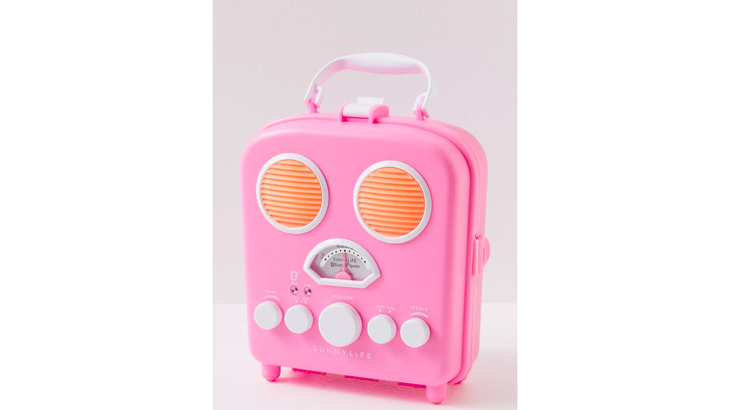 At first glance, you might think the Beach Sounds speaker was taken from the set of the Barbie Movie itself. This candy pink retro-inspired speaker is sand- and water-resistant, and the ideal size for any outdoor adventure (listening respectfully, of course). Take it to the beach, on a raft, or poolside. It’s easily portable, compatible with any smartphone or tablet, and connects to Bluetooth.