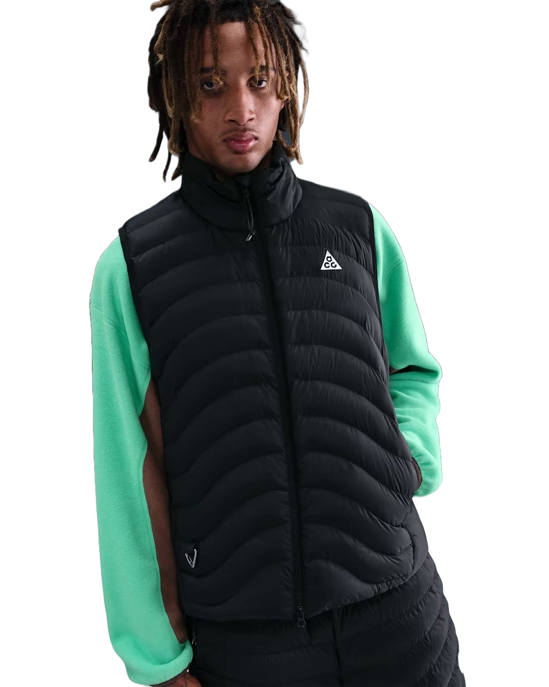 No sleeves? No problem. This insulated vest brings the heat, without the bulk. PrimaLoft® insulation and Nike Therma-FIT ADV combine to offer premium heat regulation in frigid conditions. Surprised by sunny conditions? This vest packs down into an internal pocket, and an attached triangle carabiner lets you easily clip it onto your pack.