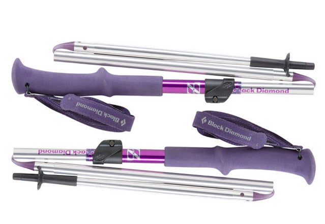 Instead of telescoping down into a small package like the rest of the trekking poles in this bunch, Black Diamond’s Women’s FL trekking poles ($130) collapse into a handy Z-shape for easy storage. To do this, you simply press a button. To straighten them out again, you pull on the grip, tightening a Kevlar cord inside, locking them into place. A nice feature on these poles is the interchangeable tips, which allow you to switch carbide for rubber to reduce your impact on the trail.