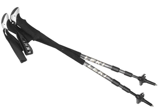 The German-made Carbonlite Aergon XL ($220) trekking poles are the most expensive in this group, but they also pack the most cutting-edge technology. Foremost, they are the lightest at 14.25 ounces, with heat-treated carbon fiber shafts for increased tensile strength. The grip turns into a mounting screw for a camera. And the locking system can withstand over 300 pounds without slipping. This Super Lock system seems more appropriate for a performance aircraft than a set of walking sticks, but it uses an expander and screw to hold the three-section shafts to your desired height (they adjust between 24.5 and 53 inches).