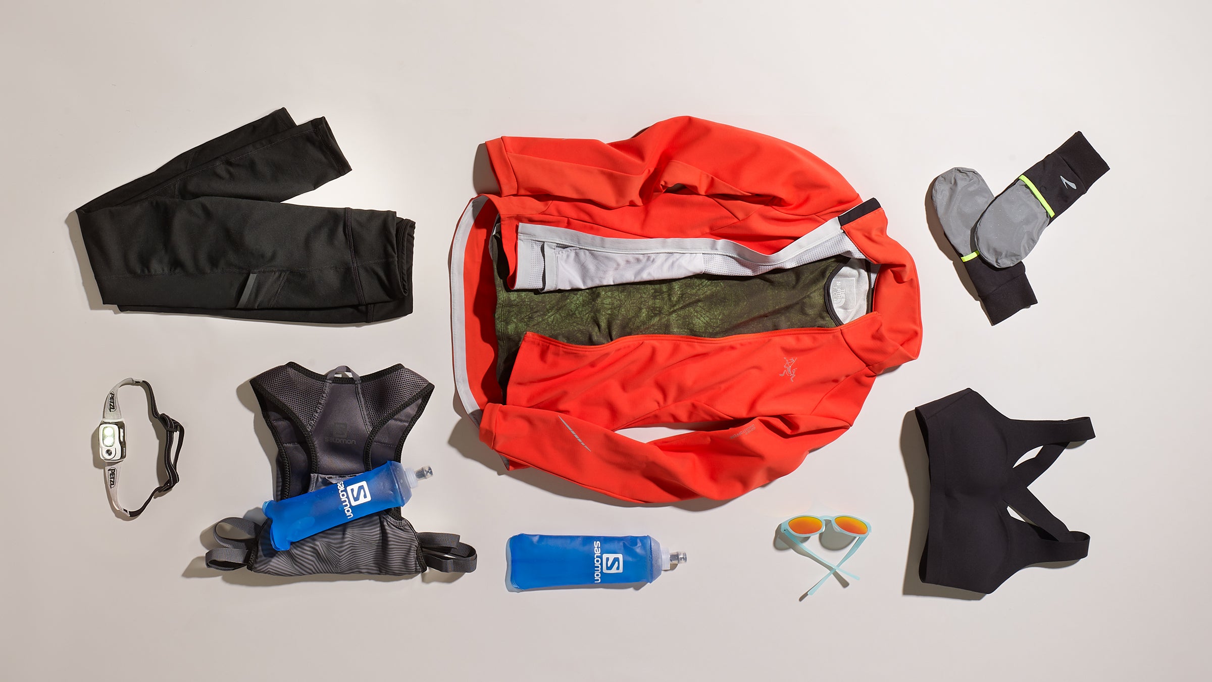 The Agile Nocturne performs two key functions. One: the minimal hydration vest holds two 500-milliliter soft flasks and a phone up front, and a spare layer in back. Two: it’s reflective, so you don’t have to worry about your long run going late.
