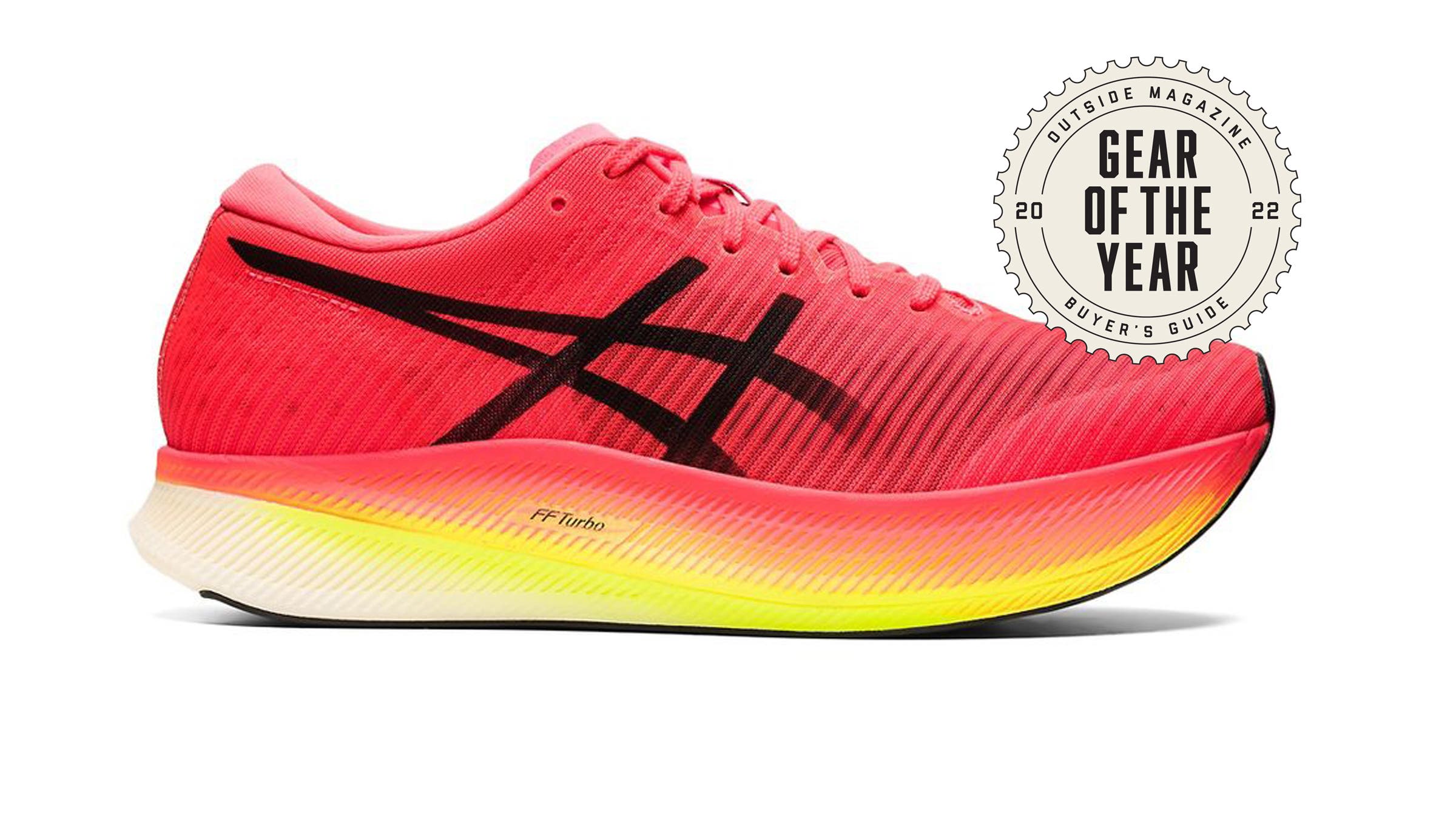 Supershoes with carbon-fiber plates have topped our lists for the past two seasons. This fall, ASICS wins the race. Pro runner Sara Hall wore a prototype of this model when she finished second at the London Marathon in October 2020, and then again in December 2020, when she clocked the second-fastest marathon time by an American woman. For regular runners, the shoe promotes a faster pace with less effort by encouraging you to cover the same distance in fewer steps. How? With a combination of 33 millimeters (31 for women) of ultralight, nylon-based cushioning under the heel plus an innovative full-length carbon plate. The concave metal strip starts higher under the heel, then swoops low under the forefoot before rounding up again under the toe, resulting in a springy ride that increases its rebound the harder you run. The shoe seemed to bounce us forward with each foot strike, and one tester noticed that across a wide range of speeds and distances, he didn’t feel any impact. Outsole rubber carried over from ASICS’s trail-shoe line grips wet and dry roads fantastically, putting that energetic midsole combo into go mode. In short, this shoe will make you feel superhuman. 5.9 oz (women’s) / 7 oz (men’s); 5 mm drop