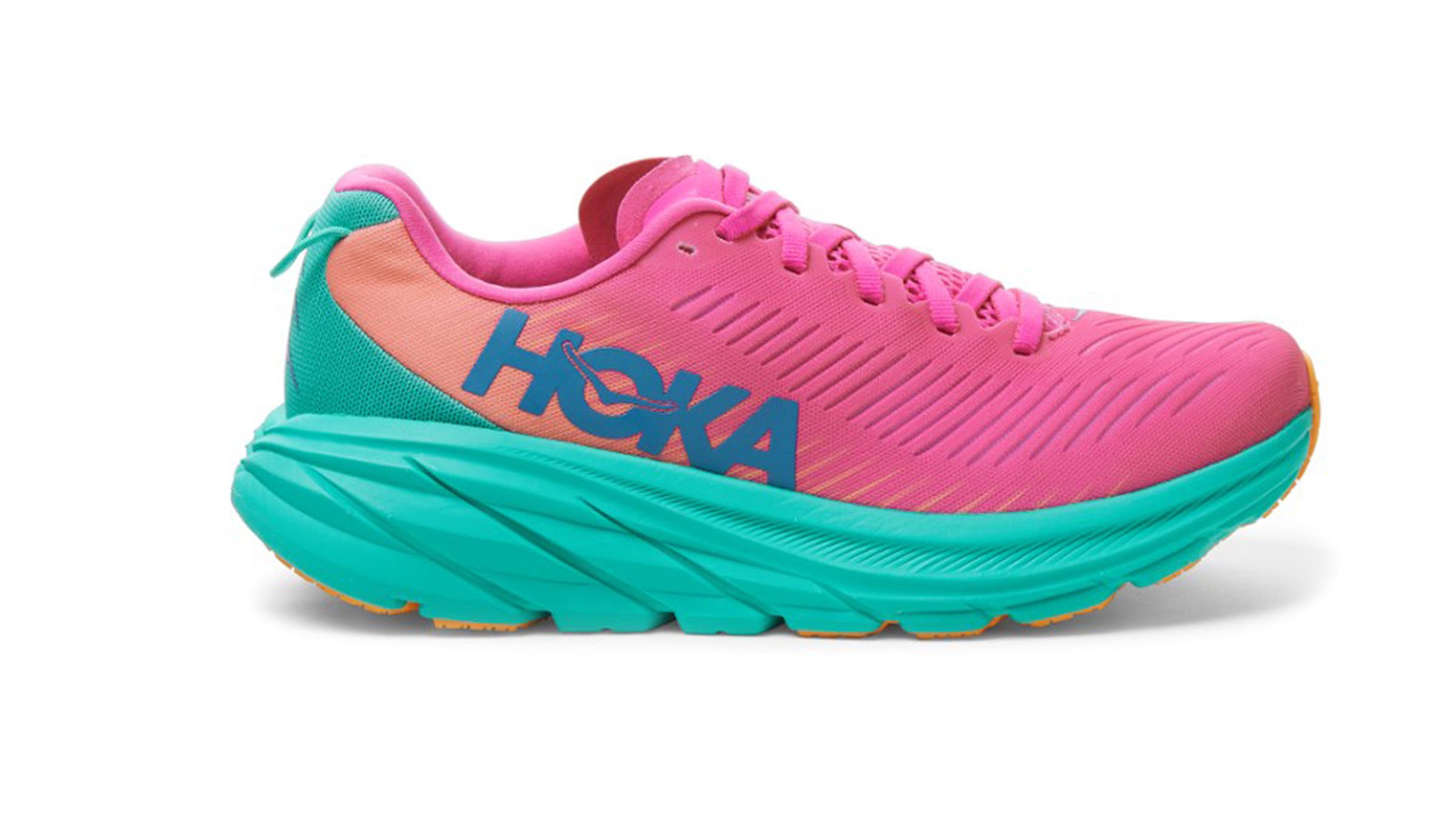 Those seeking Hoka’s signature plush feel without a bulky profile need look no further. The newest version of this trimmed-down neutral trainer is still quite soft, but it’s shockingly light on your feet and perfect for clocking all paces. The breathable 3-D mesh upper and thin asymmetrical tongue provide a secure fit that helps you maximize power in your stride without sacrificing comfort. Designers added more abrasion-resistant rubber along the outsole—a welcome boost to durability. But testers were hesitant to call the Rincon 3 responsive. The overly soft midsole lends itself more toward comfort miles than performance ones. Still, you won’t find an everyday trainer with a better weight-to-cushioning ratio. 6.2 oz (women’s) / 7.4 oz (men’s); 5mm drop