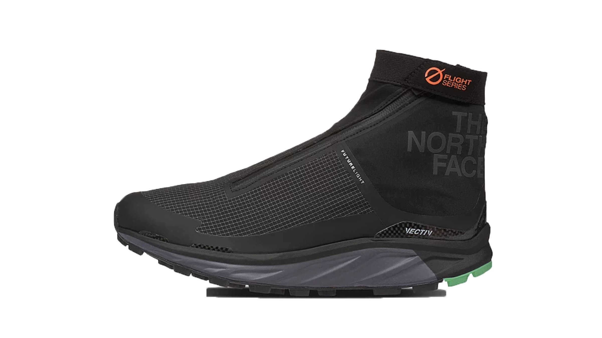 The North Face took its award-winning Vectiv trail-shoe platform, stripped away part of the upper, and added an outer ankle-height bootie made of waterproof, breathable material. We sloshed through snow, spring runoff, and puddles, and our socks remained dry. Beyond that, the shoe delivers the same carbon-plated responsiveness that we loved from its warm-weather predecessor. The plate sits just beneath the foot and extends a bit around the heel to provide stability over rough terrain. Tiny strands of über-durable spectra integrated into the upper kept our feet from moving excessively, and five-millimeter rubber lugs gripped all manner of sloppy surfaces. 10.8 oz (women’s) / 12.6 oz (men’s) 6 mm drop