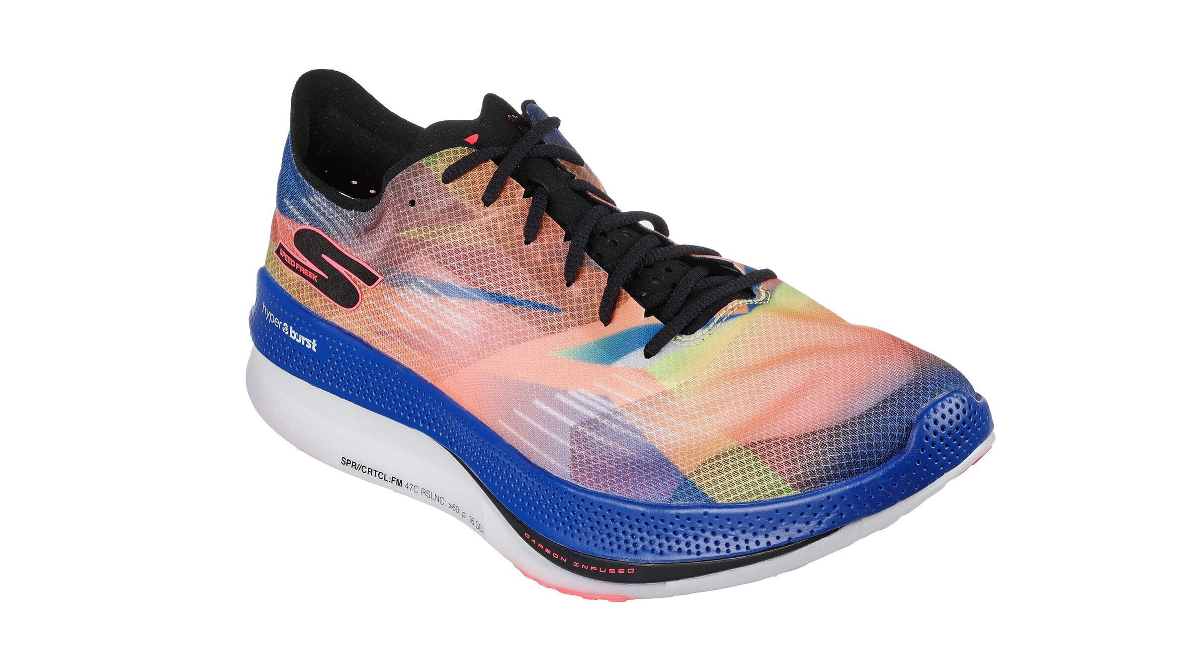 With a secure, low-volume fit, energetic cushioning, and Goodyear rubber strategically placed on the outsole, this shoe rides like a cornerhugging race car. A carbon-infused, H-shaped plate sits under the forefoot to aid speedy efforts. The responsive midsole combines cushy foam with a firm carbon plate for quick, bouncy rebound, while the featherweight, breathable mono-mesh upper adds to the sleek feel. (Men’s 7 oz, women’s 5.8 oz; 4 mm drop)
