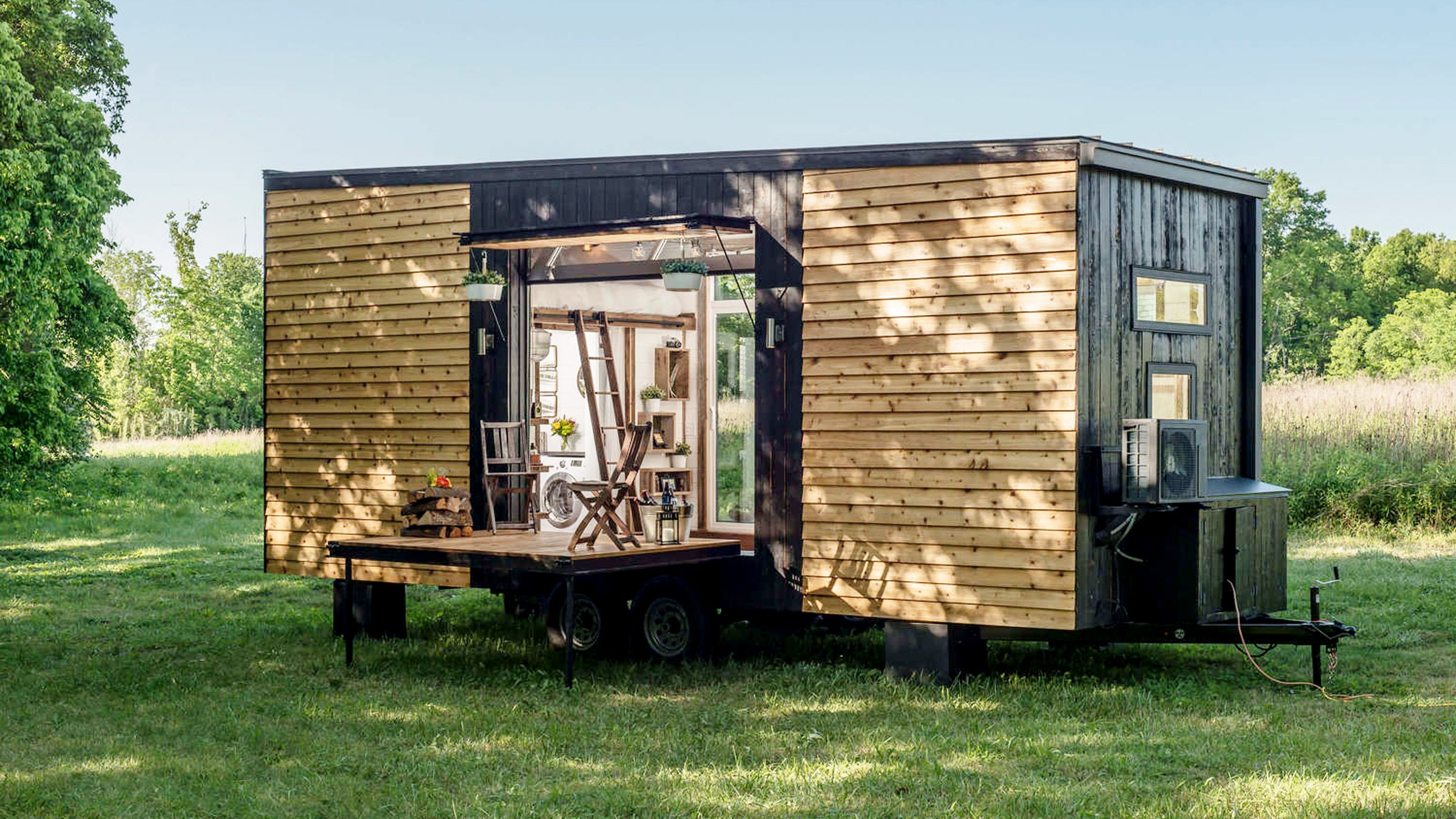 This gorgeous tiny home (from $90,000) lives bigger than you'd expect from 246 square feet, thanks to a center breezeway that feels like it belongs at a roomy sidewalk café.