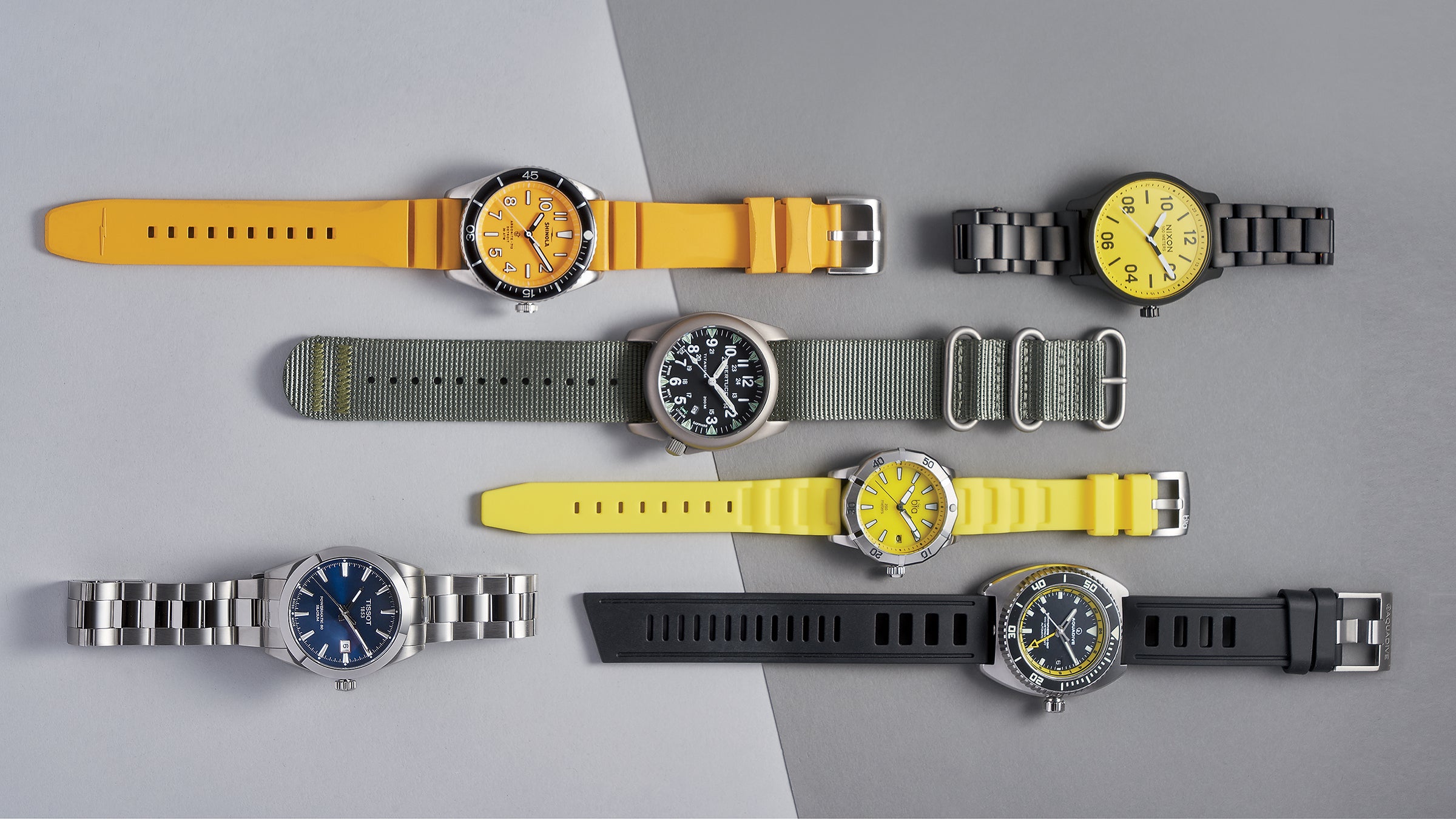 Nixon’s new Yellow Jacket line nicely blends ruggedness with striking design. In the scaled-down Patrol, the company pushes back against its often oversize, overbuilt instincts with an attractive, restrained 100-meter-water-resistant watch.
