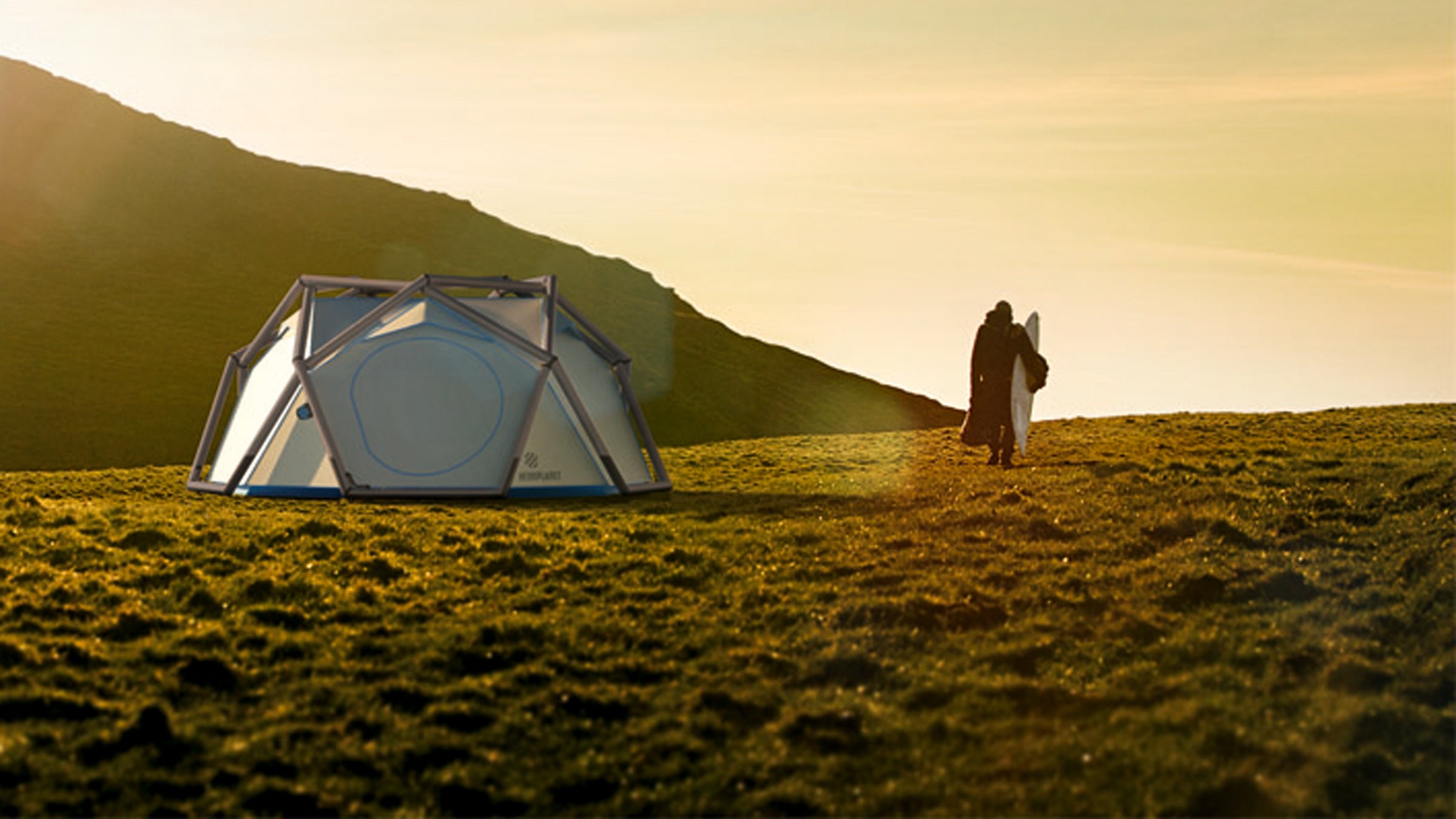 If a frame section fails, a built-in safety system allows the user to separate the chambers. (You likely don’t have to worry about this, however: Videos show the tent holding up to 60 mph gusts.) As a bonus, the tent looks like something out of Battlestar Galactica.