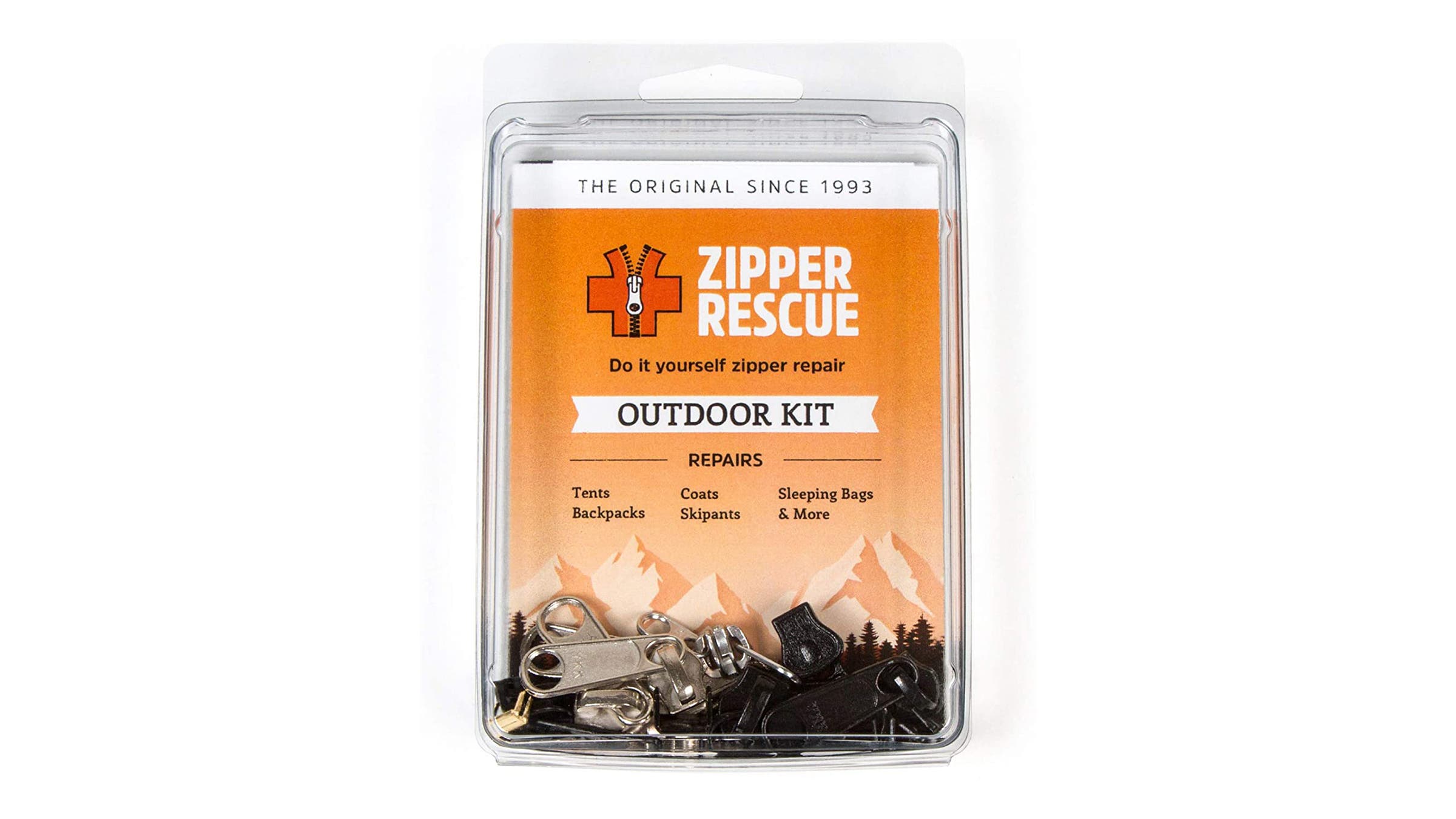 Zipper Rescue has been saving broken zipper pulls since the mid-1990s. Compatible with coil and plastic-tooth zippers, this kit comes with a variety of standard pull sizes that let you swap out damaged sliders and bring your gear’s zippers back to life. The kit works with both separating and closed-in zippers, supplying universal top and bottom stops as well as a handy drawn-to-scale guide that helps you select the right parts for your item. Repairs can be done using standard pliers (needlenose work best). While it’s great for those specific issues, if your zipper has broken teeth or the retainer box (the “box and pin” mechanism at the bottom of your jacket zipper) is busted, you’ll need more than just this kit.