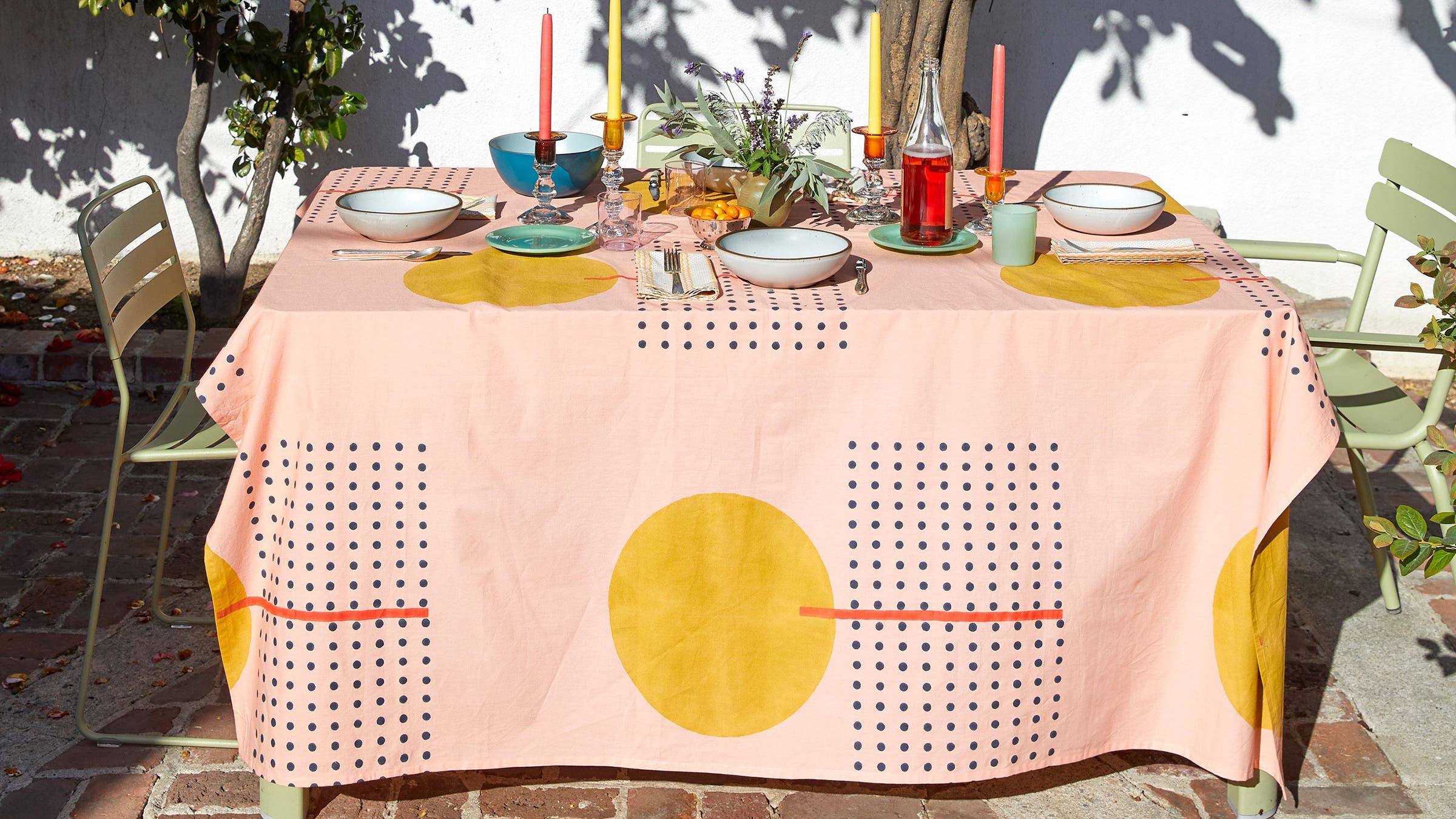 The designers behind this art piece learned Rajasthani block printing while traveling in India. Today the studio produces its textiles in the same region, where each pattern is hand-carved into wood and then printed onto organic cotton using nontoxic pigments.