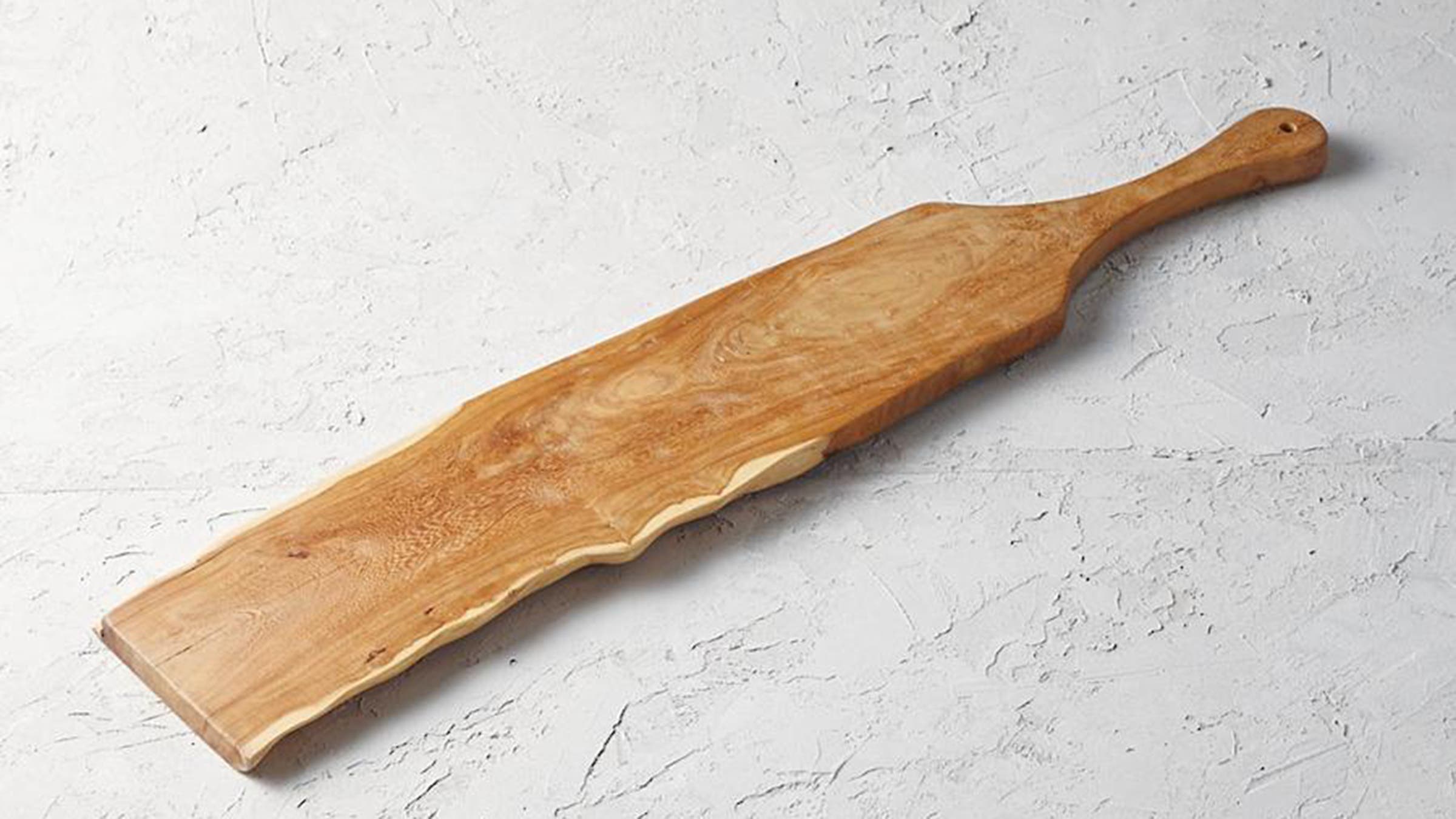 Charcuterie enthusiasts, rejoice: this serving board has a 40-inch span that makes it the perfect centerpiece for any festive occasion. Hand-carved, with an attractive live edge, each one is unique.