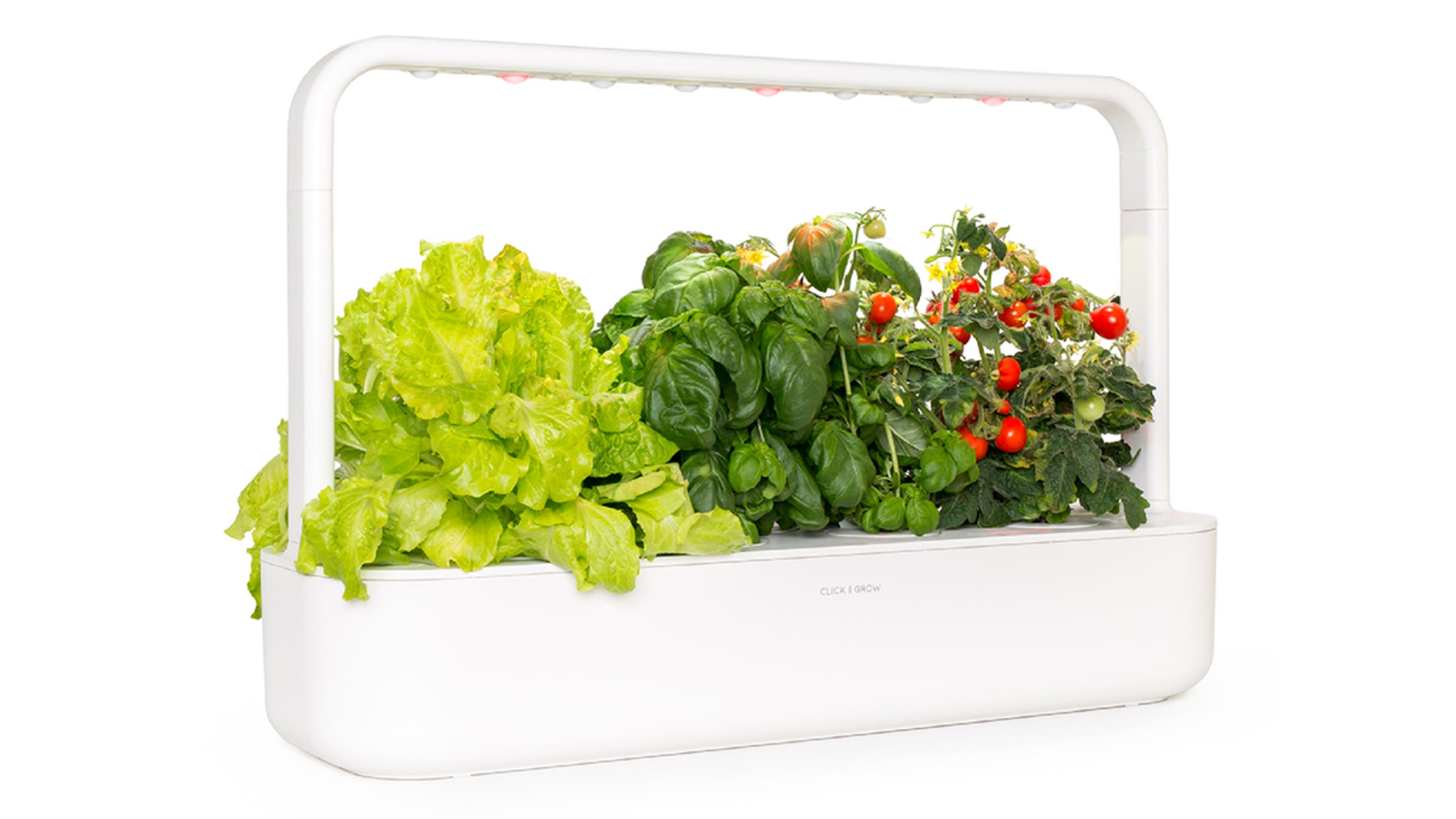 Apartment dwellers can cultivate their own produce with this mini garden. An app (Android and iOS) controls the overhead LED panel, and a four-liter tank provides a month’s worth of water to the nine plant pods, which can be filled with the company’s more than 75 mostly organic herbs, fruits, and veggies.