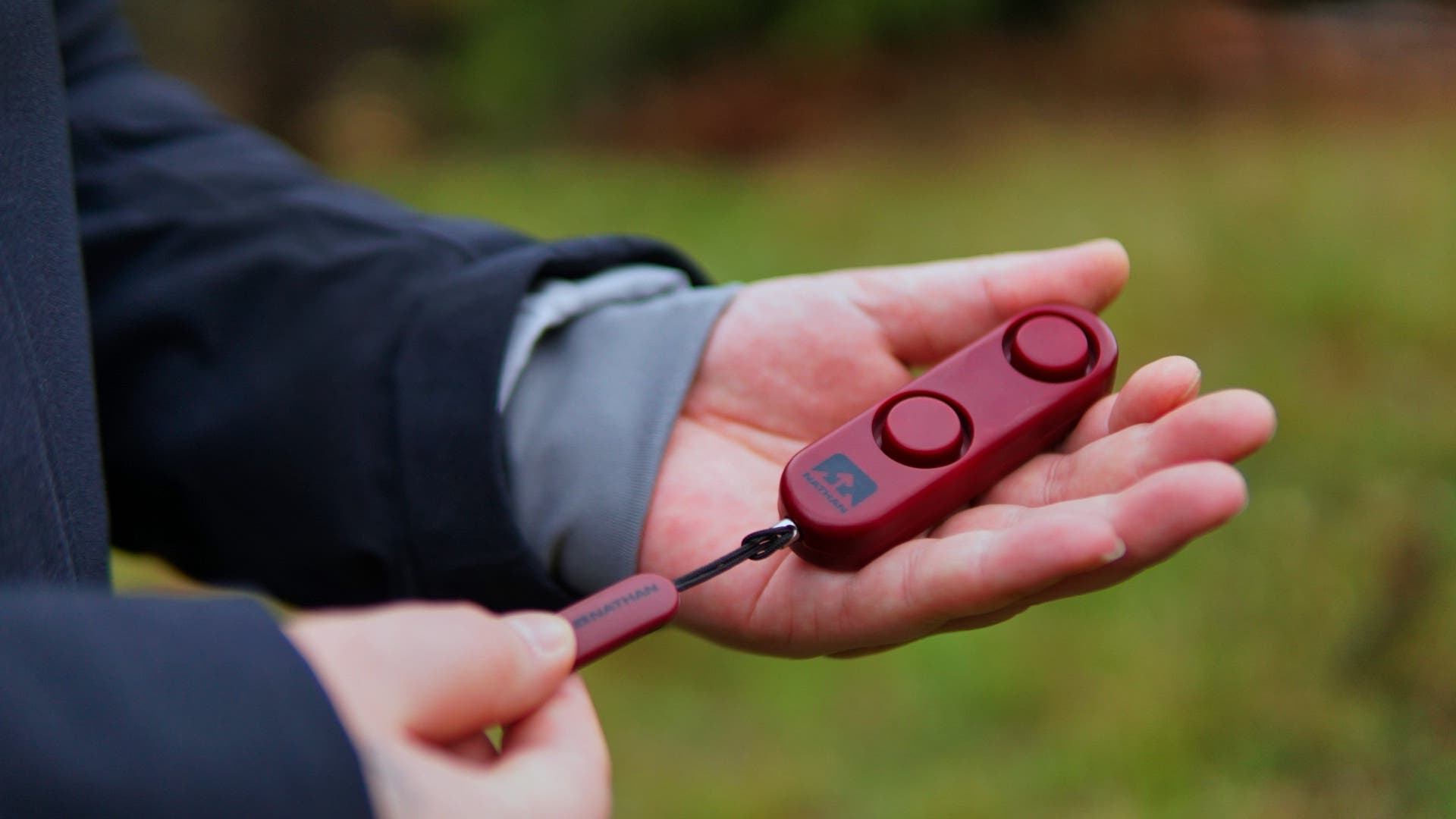An alarm’s main purpose is to draw attention. The Nathan siren I carry makes it easy to do that—it has a pull tab with a pin that activates the alarm (just push the pin back in to stop the siren). The two button-shaped features are the speakers that emit the noise.