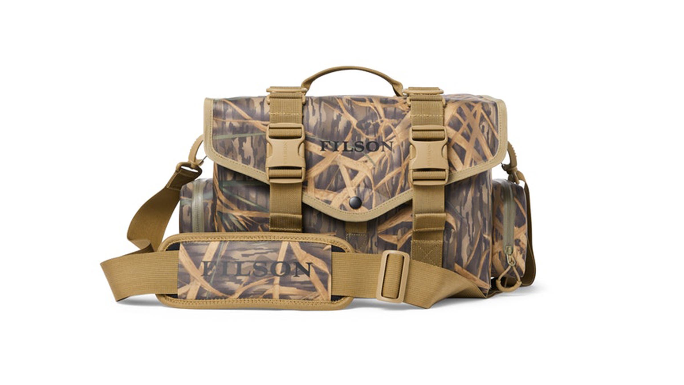 Filson has added a camouflage option to its line of reliable dry bags. Whether in the duck hunting blind or on a wet photoshoot, this pack keeps your gear totally dry. Credit the same kind of zippers found in dry suits, plus seams that are welded with radio frequency, which creates an incredibly strong bond. The 840-denier nylon tarpaulin TPU—a material commonly used in whitewater-rafting gear—resists punctures and abrasions. A padded, divided interior organizes and protects shotgun shells and camera gear. —J.N.W.