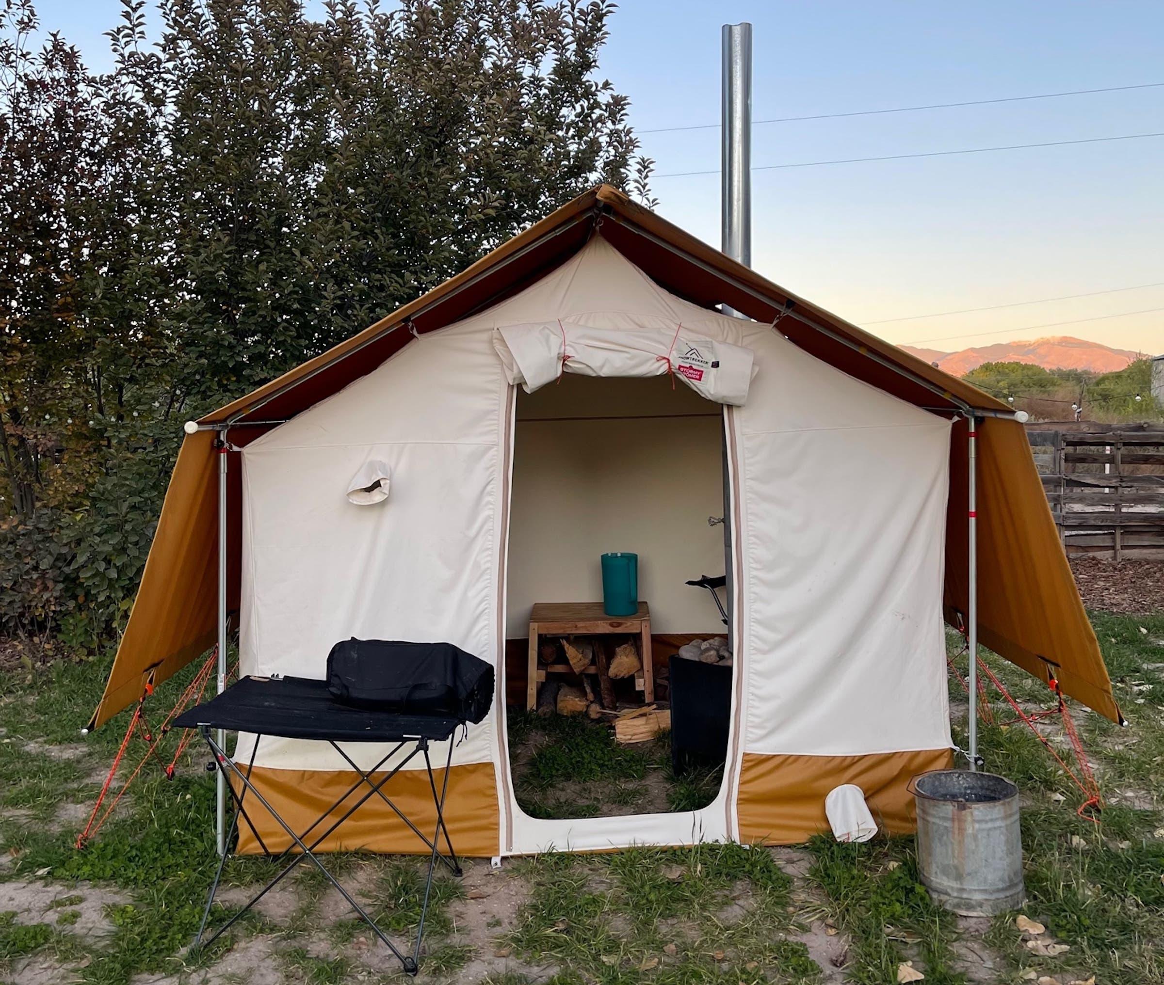 Here’s the catch: Snowtrekker’s Sauna Tent isn’t cheap. The canvas retails at $4,200. Plus, it’s $300 for the frame (or DIY following included instructions for closer to $100) and $560 for the stove. But it’s a lot easier than building your own, and its retro style looks so good, you won’t mind having it set up permanently in your backyard. The canvas is incredibly high quality and traps heat nicely. It’s also portable; my husband and I plan to take it on a camping trip this winter. The tent itself is too small to camp in while the fire’s roaring, so we’ll need to bring another one to sleep in. But I can’t think of a cozier way to warm up before crawling into your sleeping bag.