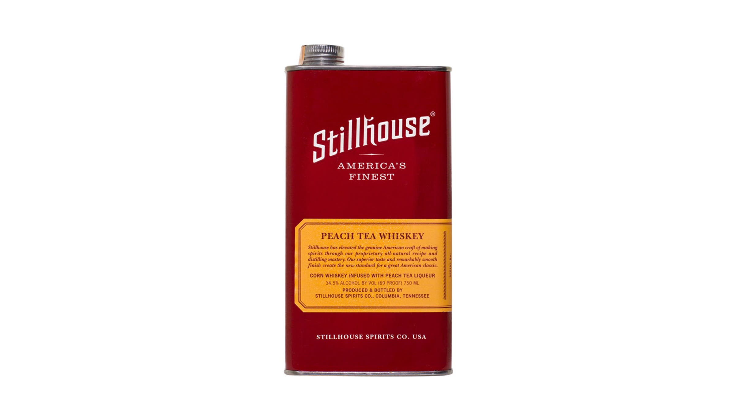 A day in stiff boots calls for a stiff drink. This 69-proof corn whiskey is infused with peach tea liquor—great for straight sips or for crafting unusual cocktails. The screw-cap stainless-steel vessel offers the recyclability of a can but the portability of a screw-cap water bottle. Broken glass no more!