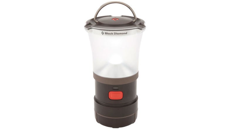 This AAA-battery-powered device is my favorite in-tent lantern because it’s great for reading before bed. The nearly opaque exterior softens the light, but it still packs plenty of lumens (220) so you can see small print. It’s also simple to use: just spin the base to turn it on and cycle through the brightness options.