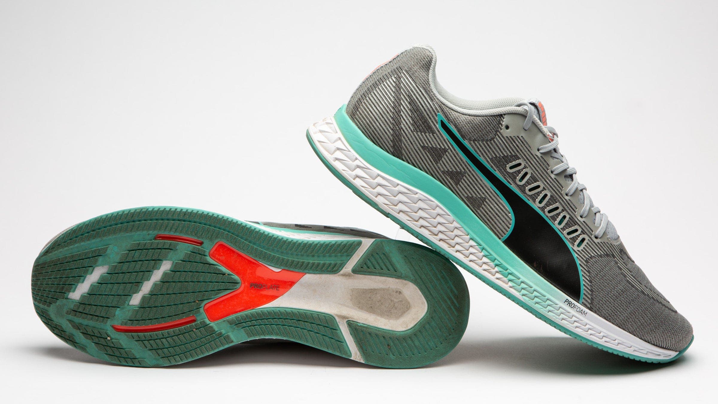What is effectively Puma’s reentry into running after a couple years’ absence is this light trainer with a bit of pop from an embedded plastic plate and its ProForm, energy-returning midsole. While testers universally raved about the shoe’s aesthetics, the feedback was rather “meh” on the shoe’s performance. The plastic midsole plate did help to get testers up on their toes quickly when they used the shoes for up-tempo running, but the transition felt awkward.