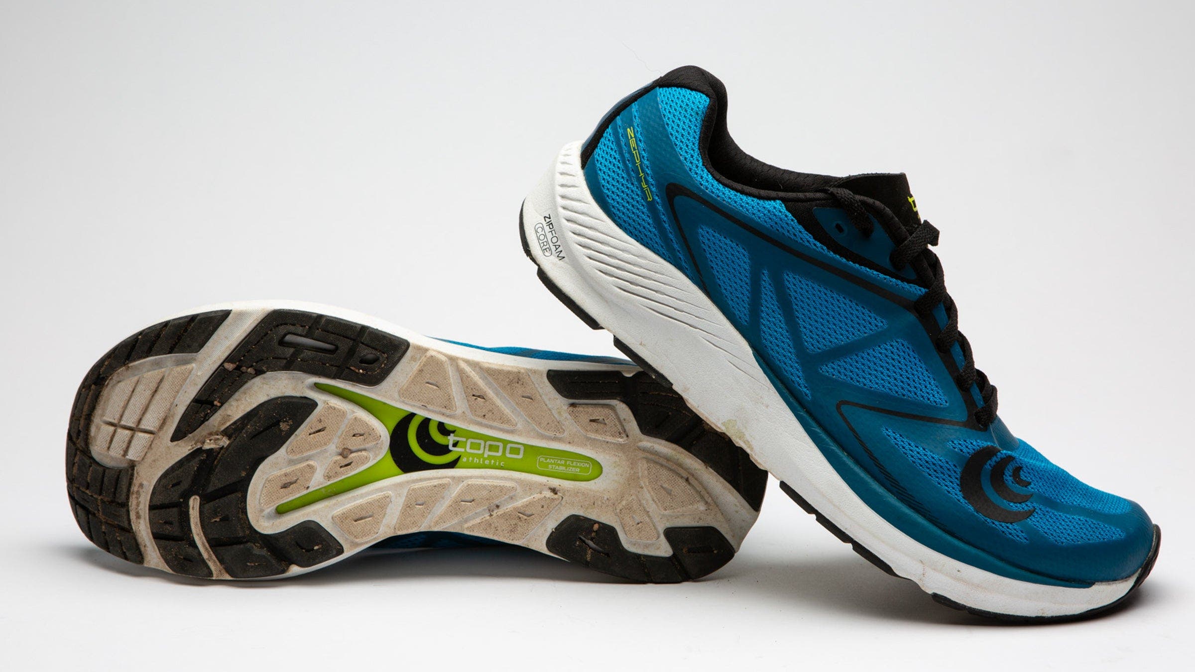 Topo Athletic, which makes shoes with low heel height and room for your toes, added a slight twist to its recipe for natural running, putting in a 5 mm drop between the 28 mm heel and 23 mm forefoot, along with a midsole-stabilizing plate to contain forefoot motion and boost propulsion.