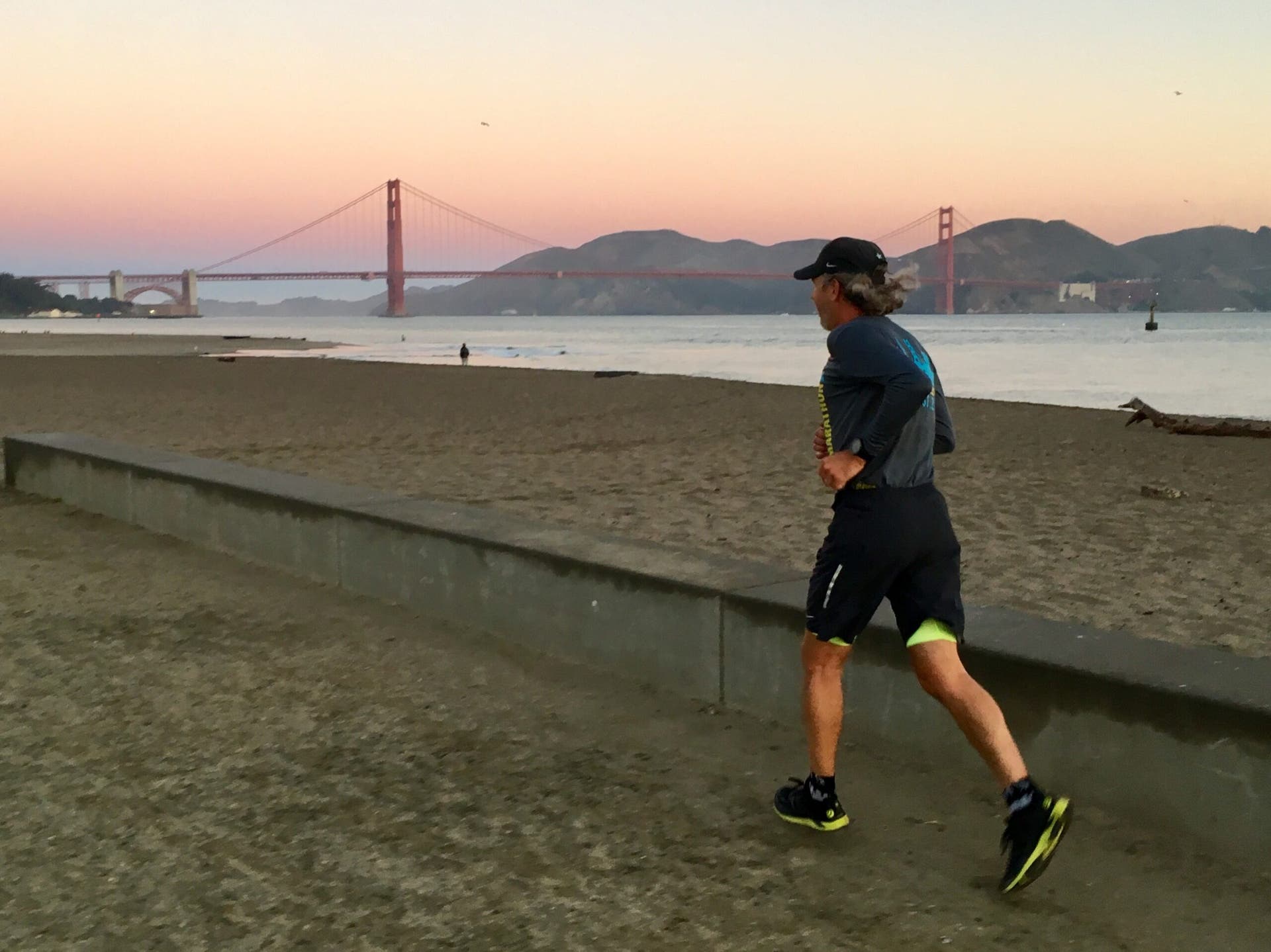 I see him running through snowstorms and summer heat, along coastlines and in the desert, down city streets and over mountain passes—sometimes with others, often alone, the continuity of his stride cutting through changing jobs, homes, relationships.