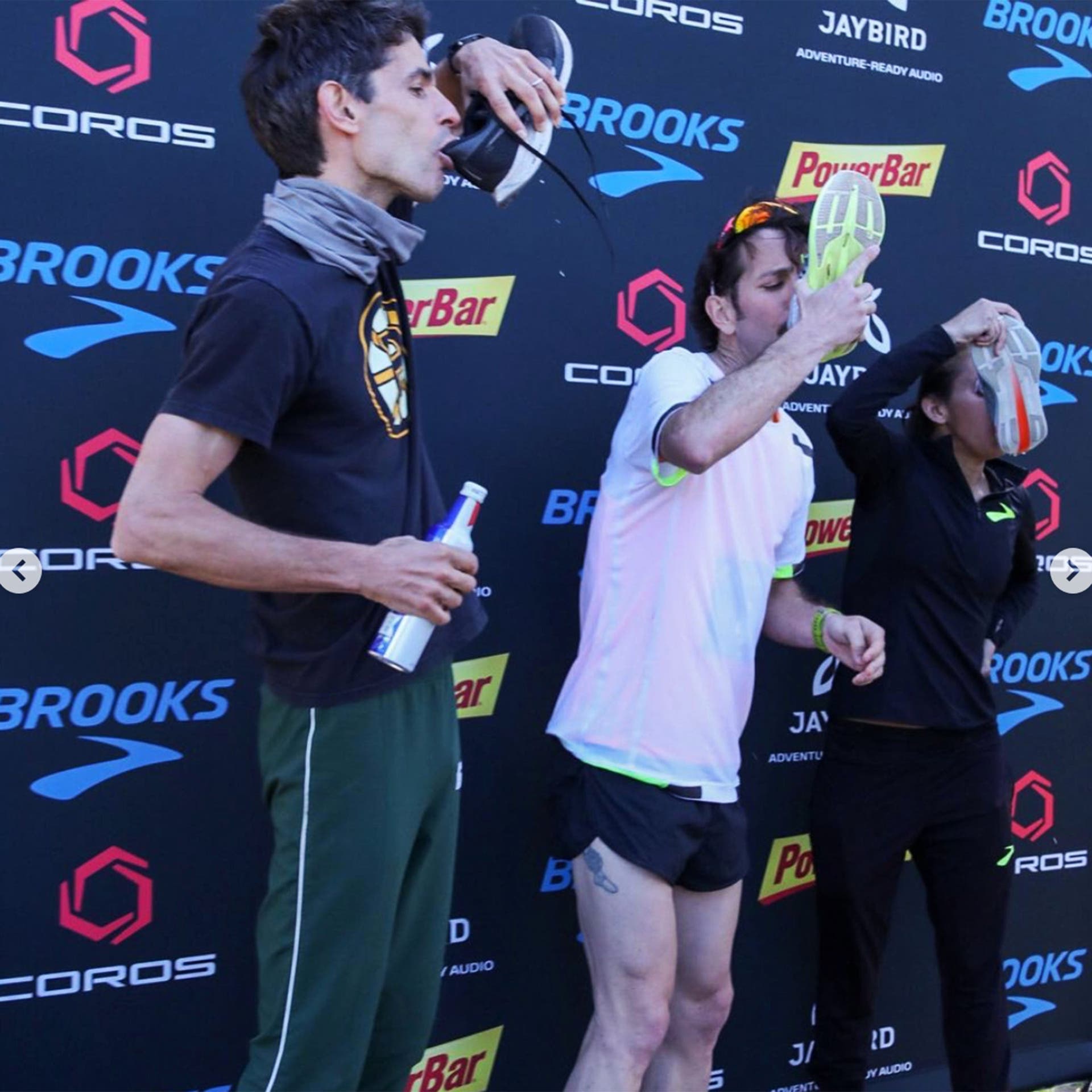 Less than five minutes ahead of him, Des Linden established a new world record with her 2:59:54. Afterwards, they celebrated by drinking champagne from their running shoes.