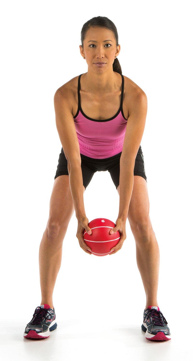 Equipment: Dumbbell or medicine ball, stability ball (advanced)